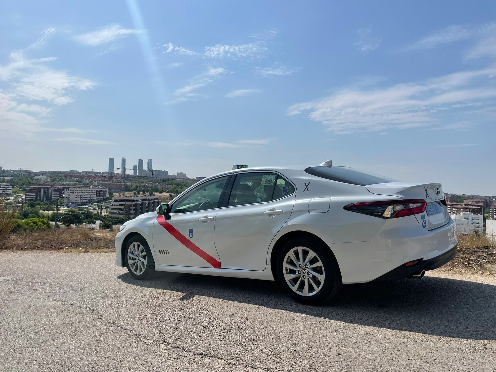 Además, cuido cada detalle del vehículo, tanto por dentro como por fuera. Mi taxi —un Toyota Camry con interior de cuero blanco, único en Madrid— refleja la forma en la que entiendo mi trabajo: limpieza, elegancia y confort. Quiero que cuando subas al coche notes que estás en buenas manos, que el viaje será tranquilo, silencioso y seguro.